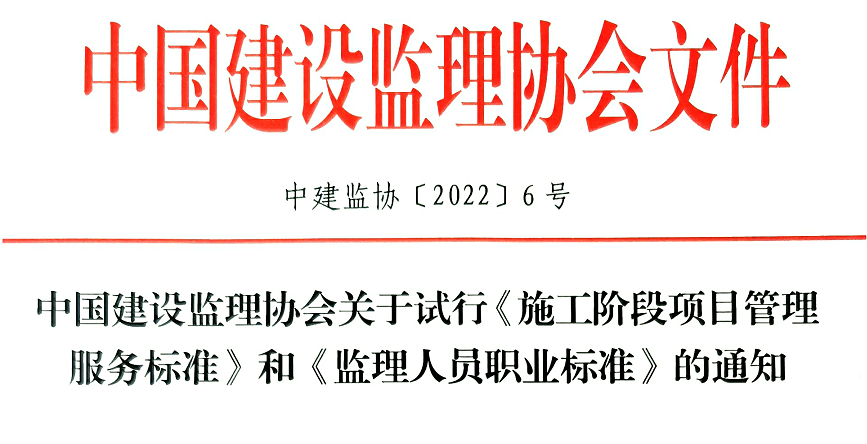 近日,中國建設(shè)監(jiān)理協(xié)會官網(wǎng)印發(fā)試行《施工階段項目管理服務(wù)標(biāo)準(zhǔn)》和《監(jiān)理人員職業(yè)標(biāo)準(zhǔn)》的通知。