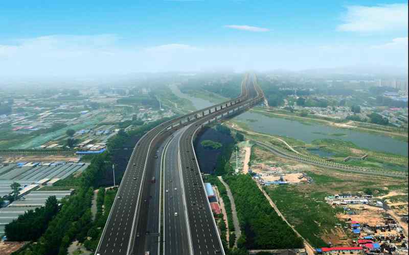 鄭州市四環(huán)線及大河路快速化工程為由大河路、東四環(huán)、南四環(huán)及西四環(huán)組成閉合環(huán)線,路線全長約93.030km。全線采用城市快速路路標準,規(guī)劃控制總寬度180m(其中道路紅線寬80m,兩側各有50m寬綠化帶),西西四環(huán)、大河路(107輔道以西段)、南四環(huán)采用高架快速路形式,標準橫斷面組成為:高架快速路(雙向八車道)+地面主干路(雙向八車道)+輔路:大河路(107輔道以東段)、東四環(huán)采用地面快速路形式,標準橫斷面組成為:主線地面快速路(雙向十車道)+輔路。全線高架快速路長63.624km(新建56.536km,現(xiàn)狀7088km),地面快速路長29.406km;共設置27座互通立交,其中新建立交15座(改造現(xiàn)狀立交7座,利用現(xiàn)狀立交5座),37對上下匝道,8座隧道(下穿通道);全線與河(渠)交叉21處,與鐵路交叉12處(其中下穿高鐵8處,上跨普鐵4處),與軌道交通線交叉22處。