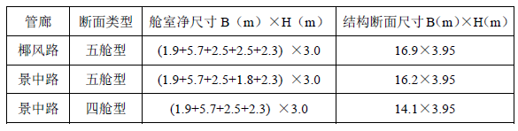 本次設(shè)計(jì)綜合管廊根據(jù)入廊管線(xiàn)情況與建設(shè)條件,管廊斷面尺寸為:
